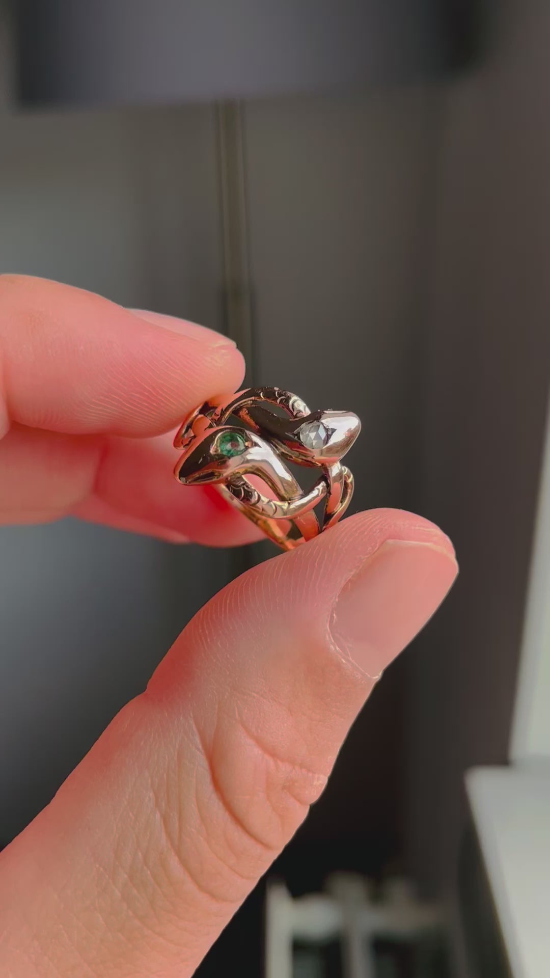 Victorian Entwined Double Emerald Rosecut Diamond Snake Ring
